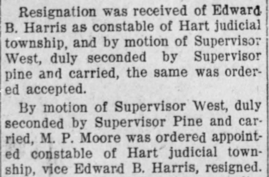 Although seemingly asleep at the wheel during its earliest stages, the county board of supervisors organized the Hart Judicial Township on March 2, 1908 then made up for lost time.