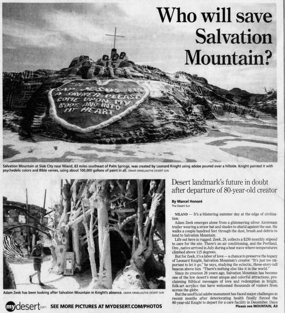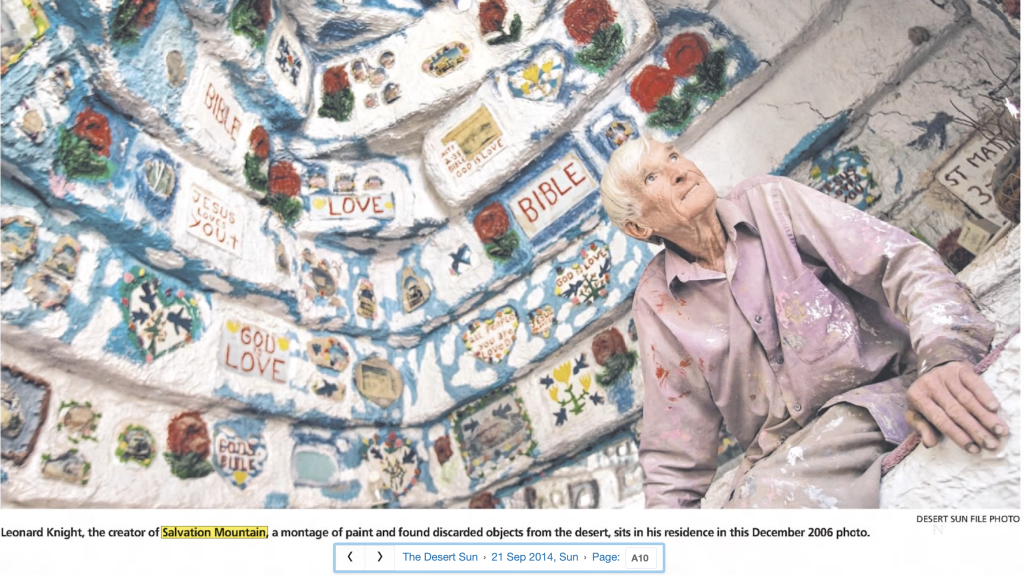 In 2000, Salvation Mountain was deemed a National Folk Art Site.