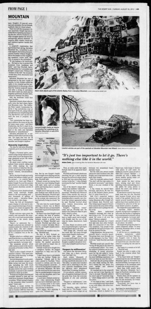 Part of his plan, according to the letter, also entails ousting Salvation Mountain’s current management and taking over operations.